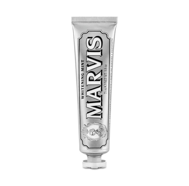 خمیر دندان سفید کننده مارویس یک خمیر دندان روزانه با مواد مینرال بوده که به شدت با پوسیدگی دندان ها مقابله می کند. این خمیر دندان دارای طعم قوی نعناع بوده که رایحه آن برای مدت طولانی در دهان مانده و از بوی بد دهان کاملا جلوگیری می کند. مارویس یک برند ایتالیایی است که به طور تخصصی در به تولید محصولات بهداشتی دهان و دندان مشغول است. خمیر دندان های مارویس به دلیل ترکیبات مینرال و فرمولاسیون انحصاری، محبوبیت بسیار بالایی در اروپا و آمریکا دارند. خمیر دندان سفید کننده مارویس لکه های ناشی از سیگار،چای و قهوه را از دندان ها پاک کرده و آن ها را سفید و درخشان می کند. مواد پاک کننده انحصاری آن با سدیم مونوفلووروفسفات ترکیب شده تا با قاطعیت از پوسیدگی دندان ها جلوگیری کند. این خمیر دندان در عین پاک کنندگی بسیار بالا، بسیار لطیف و ملایم بوده و مینای دندان های حساس را تحریک نمی کند. رایحه نعناع تازه این خمیر دندان حس شادابی و تازگی را به دهان انتقال می دهد. همچنین باعث می شود با یک لبخند درخشان اعتماد به نفس خود را افزایش دهید.